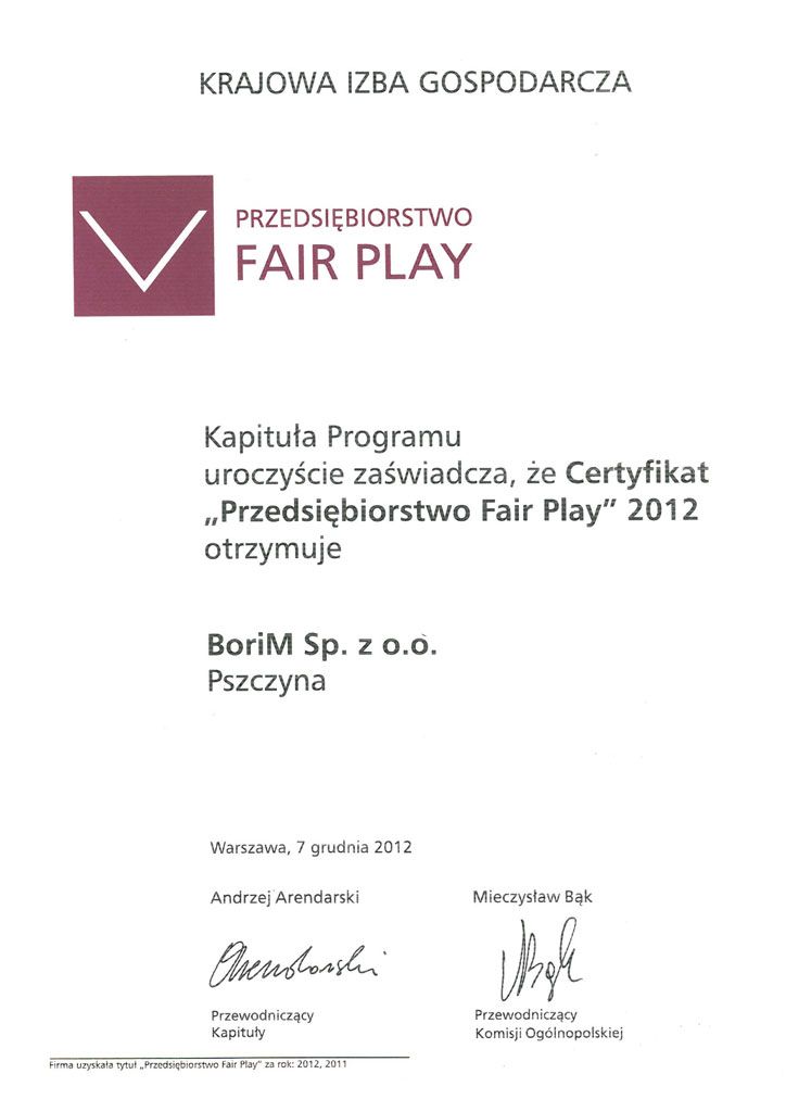 BoriM przedsiębiorstwem Fair Play 2012